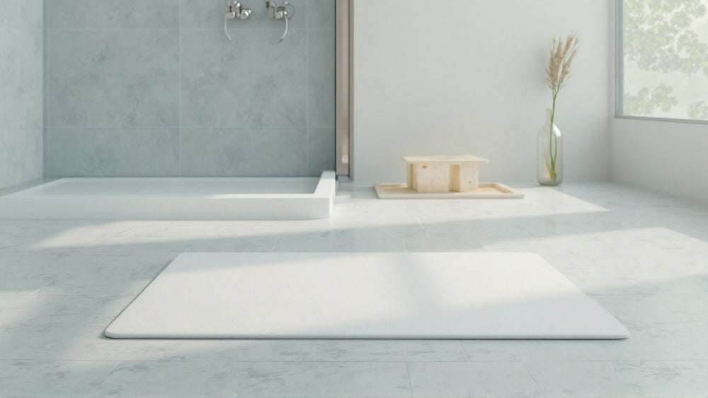 Yes! The mat has a non-slip backing that works on tile, wood, or laminate floors. Just make sure the floor is clean and dry before placing it for best results.