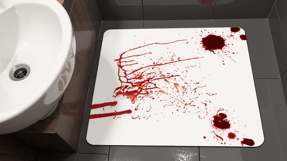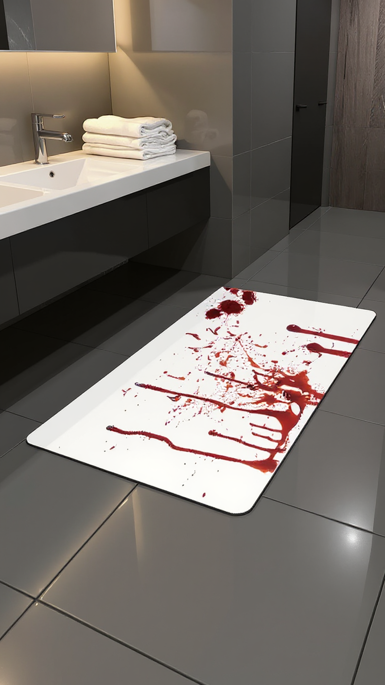 The mat is designed with a special water-activated design. When it gets wet, it reveals a realistic blood splatter pattern, giving a shocking surprise to anyone who steps on it.